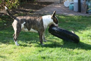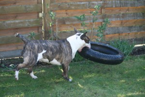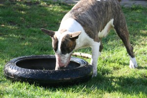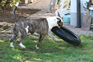 | Maggies neues Hobby - 02/04/2011 Maggie´s newest hobby | | spielen mit einem alten Motorradreifen playing with an old Motorcycle-tyre | | Maggie hat viel Spaß mit dem Reifen Maggie has a lot of fun with the tyre |