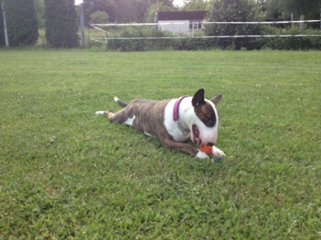 | |  | Maggie der Kawasaki-Bullterrier 19/01/2011 | | Maggie the Kawasaki-Bull Terrier |